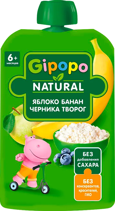 ПЮРЕ ГИПОПО ЯБЛОКО,БАНАН,ЧЕРНИКА,ТВОРОГ ПАУЧ 90Г