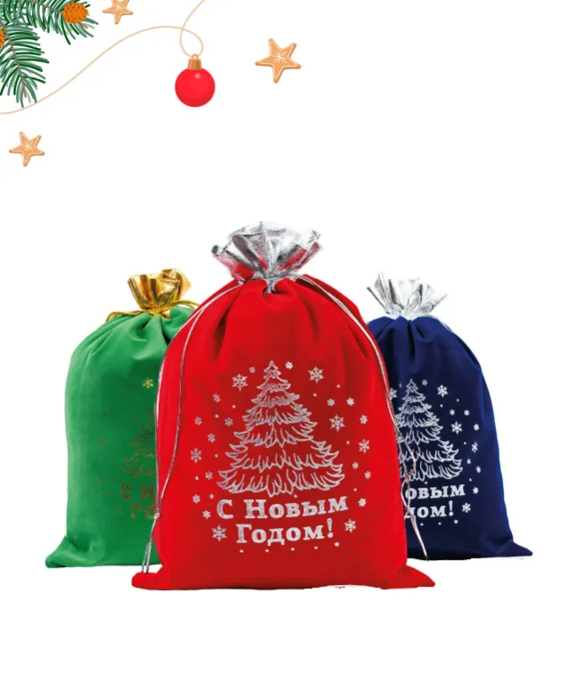 НОВОГОДНИЙ ПОДАРОК МЕШОК "ДЕДА МОРОЗА" КРАСНЫЙ 1500ГР