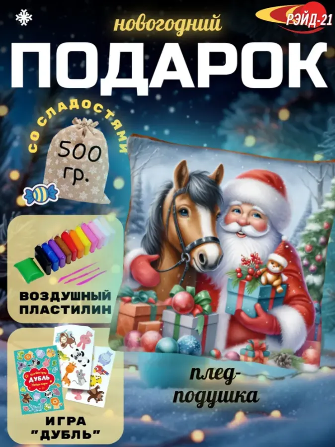 НОВОГОДНИЙ ПОДАРОК ПЛЕД-ПОДУШКА "НОВОГОДНЕЕ НАСТРОЕНИЕ"500ГР