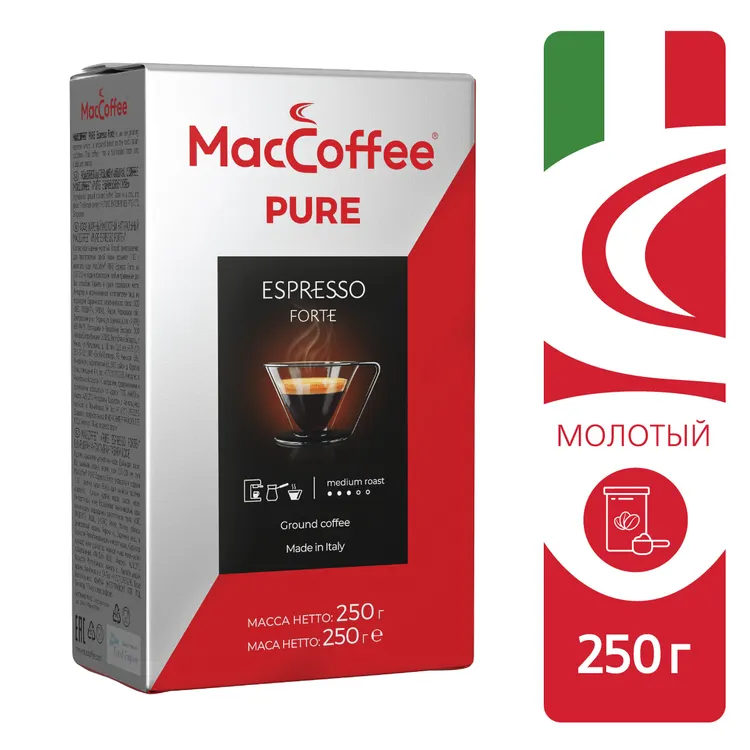 КОФЕ МОЛОТЫЙ PURE ESPRESSO FORTE MACCOFFEE 250ГР*12 БРИК.