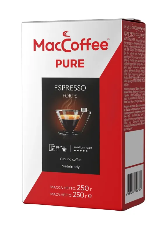 КОФЕ МОЛОТЫЙ PURE ESPRESSO FORTE MACCOFFEE 250ГР*12 БРИК.