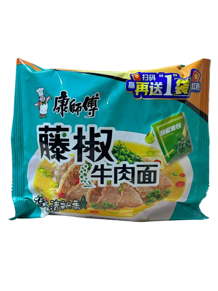 ЛАПША Б/П KANGSHIFU СО ВКУСОМ ГОВЯДИНЫ И ПЕРЦЕМ ИЗ РОТАНГА (БИРЮЗОВАЯ ПАЧКА) 103Г*24