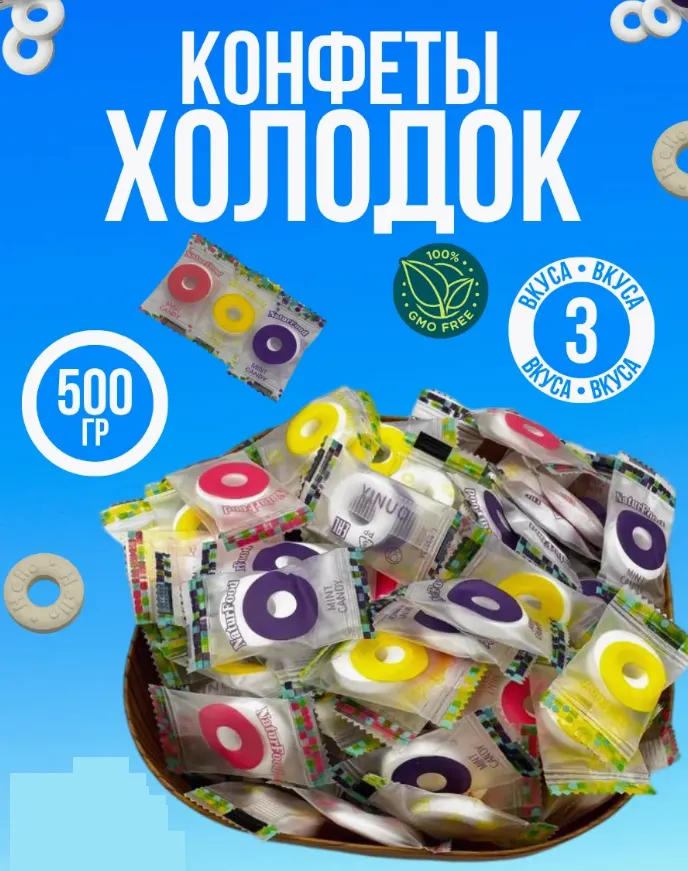 КАРАМЕЛЬ ХОЛОДОК БЕЗ САХ 0,5 КГ