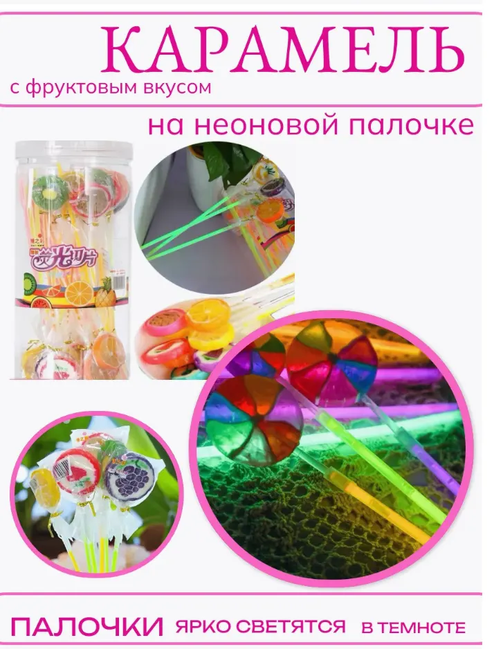 КАРАМЕЛЬ НА СВЕТЯЩЕЙСЯ ПАЛОЧКЕ АССОРТИ ФРУКТОВ 15 ГР
