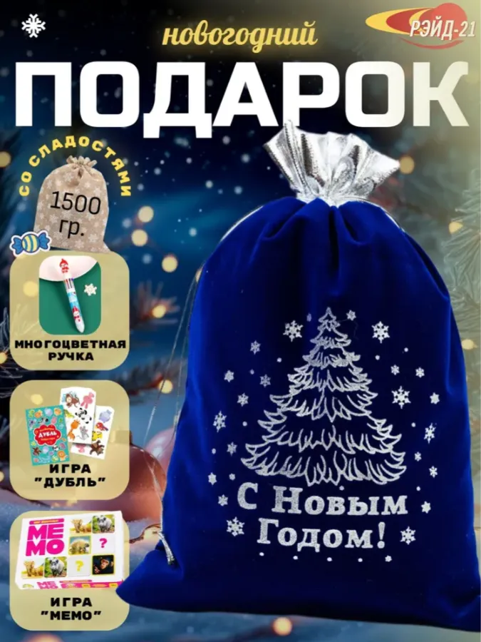 НОВОГОДНИЙ ПОДАРОК МЕШОК "ДЕДА МОРОЗА" СИНИЙ 1500ГР
