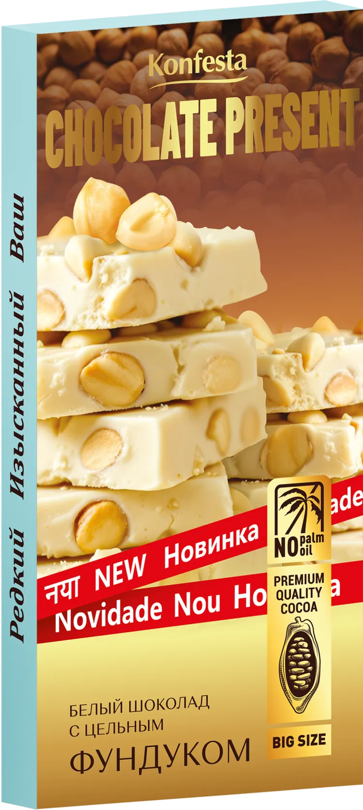 ШОКОЛАД БЕЛЫЙ С ЦЕЛЬНЫМ ФУНДУКОМ 180 ГР КОНФЕСТА