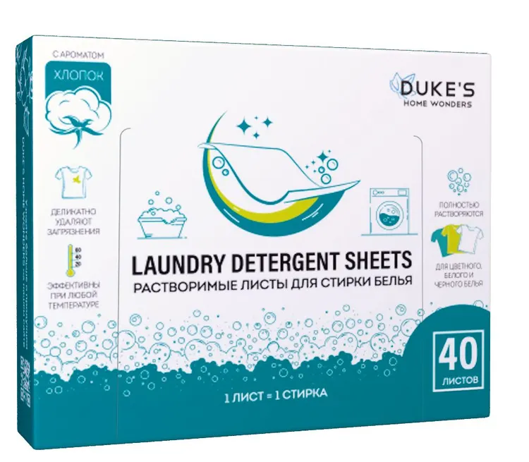 DUKE`S ЛИСТЫ Д/СТИРКИ БЕЛЬЯ ХЛОПОК 40ШТ*12