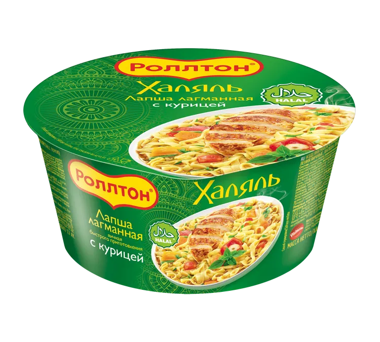 ЛАПША БП "РОЛЛТОН" ЛАГМАННАЯ С КУРИЦЕЙ ХАЛЯЛЬ 90ГР ЛОТОК