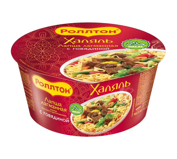 ЛАПША БП "РОЛЛТОН" ЛАГМАННАЯ С ГОВЯДИНОЙ 90ГР ХАЛЯЛЬ ЧАШКА