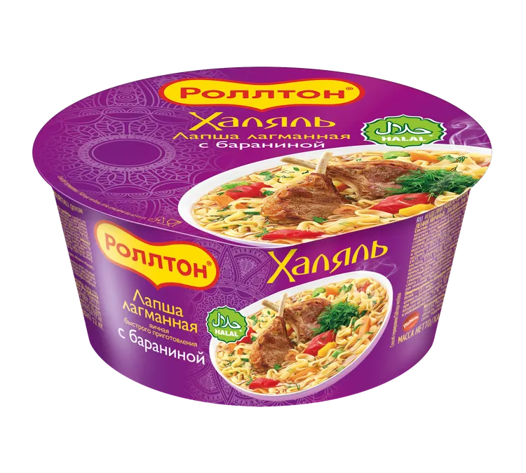 ЛАПША БП "РОЛЛТОН" ЛАГМАННАЯ С БАРАНИНОЙ ХАЛЯЛЬ 90ГР ЧАШКА
