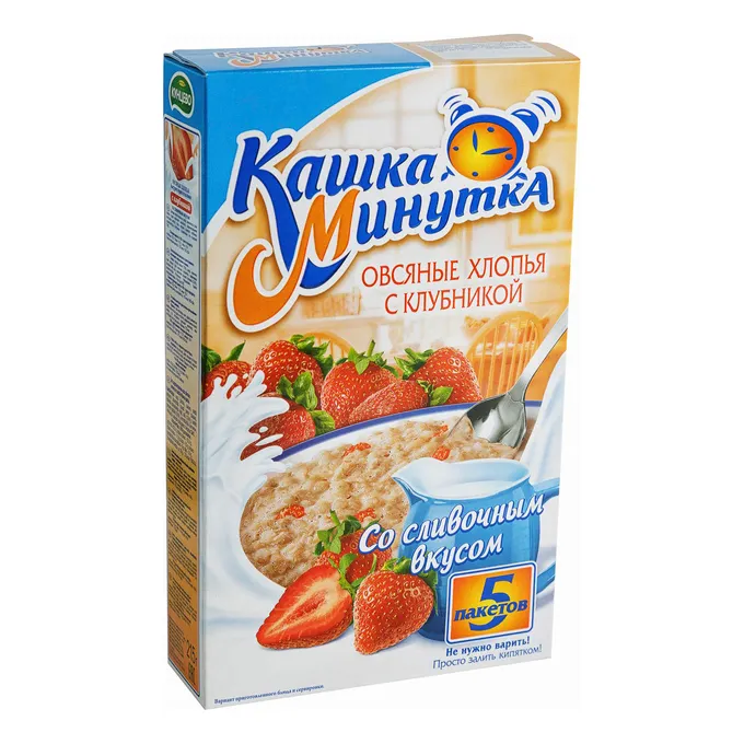 ХЛОПЬЯ ОВСЯНЫЕ Б/П "КАША-МИНУТКА"С КЛУБНИКОЙ СО СЛИВ.ВКУСОМ В КОРОБКАХ 215ГР(5ПАК*43ГР)