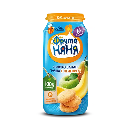 ФРУТОНЯНЯ 250Г. ПЮРЕ ИЗ ЯБЛОК, БАНАНОВ И ГРУШ С ПЕЧЕНЬЕМ ДЛЯ ПИТАНИЯ ДЕТЕЙ РАННЕГО ВОЗРАСТА