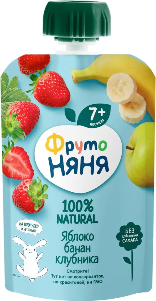 ФРУТОНЯНЯ 90 ГР. ДЕСЕРТ ИЗ ЯБЛОК, БАНАНОВ И КЛУБНИКИ