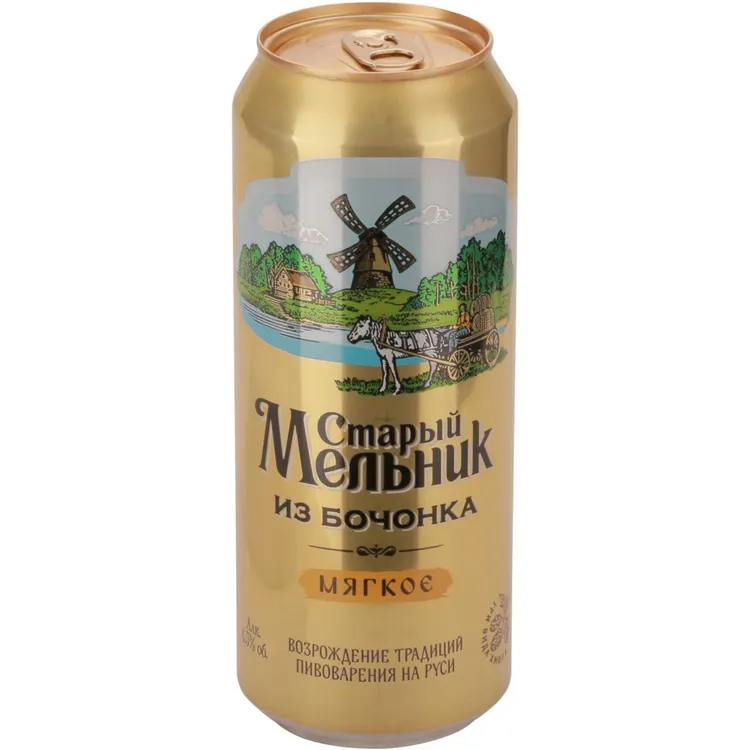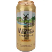 ПИВО "СТАРЫЙ МЕЛЬНИК ИЗ БОЧОНКА МЯГКОЕ" СВЕТЛОЕ. ПАСТЕРИЗОВАННОЕ. 4,3%, БАНКА АЛЮМИНИЕВАЯ 0,45 Л