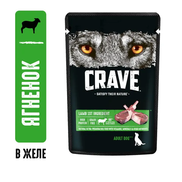 Влажный корм CRAVE д/собак ягненок желе 28*85г
