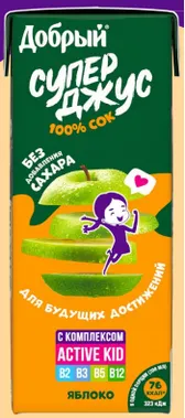 СОК ДОБРЫЙ СУПЕРДЖУС 0,2Л/27 ЯБЛОКО+ВИТАМ КОМПЛЕКС ACTIVKIDS