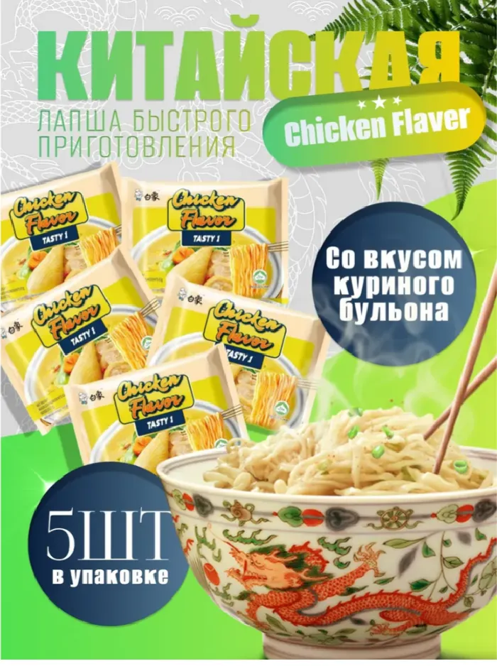 БАЙСЯН ВКУСНО ЛАПША Б/П КЛАССИЧЕСКАЯ СО ВКУСОМ КУРИНОГО СУПА, 82Г/5ШТ, ХАЛЯЛЬ, КИТАЙ